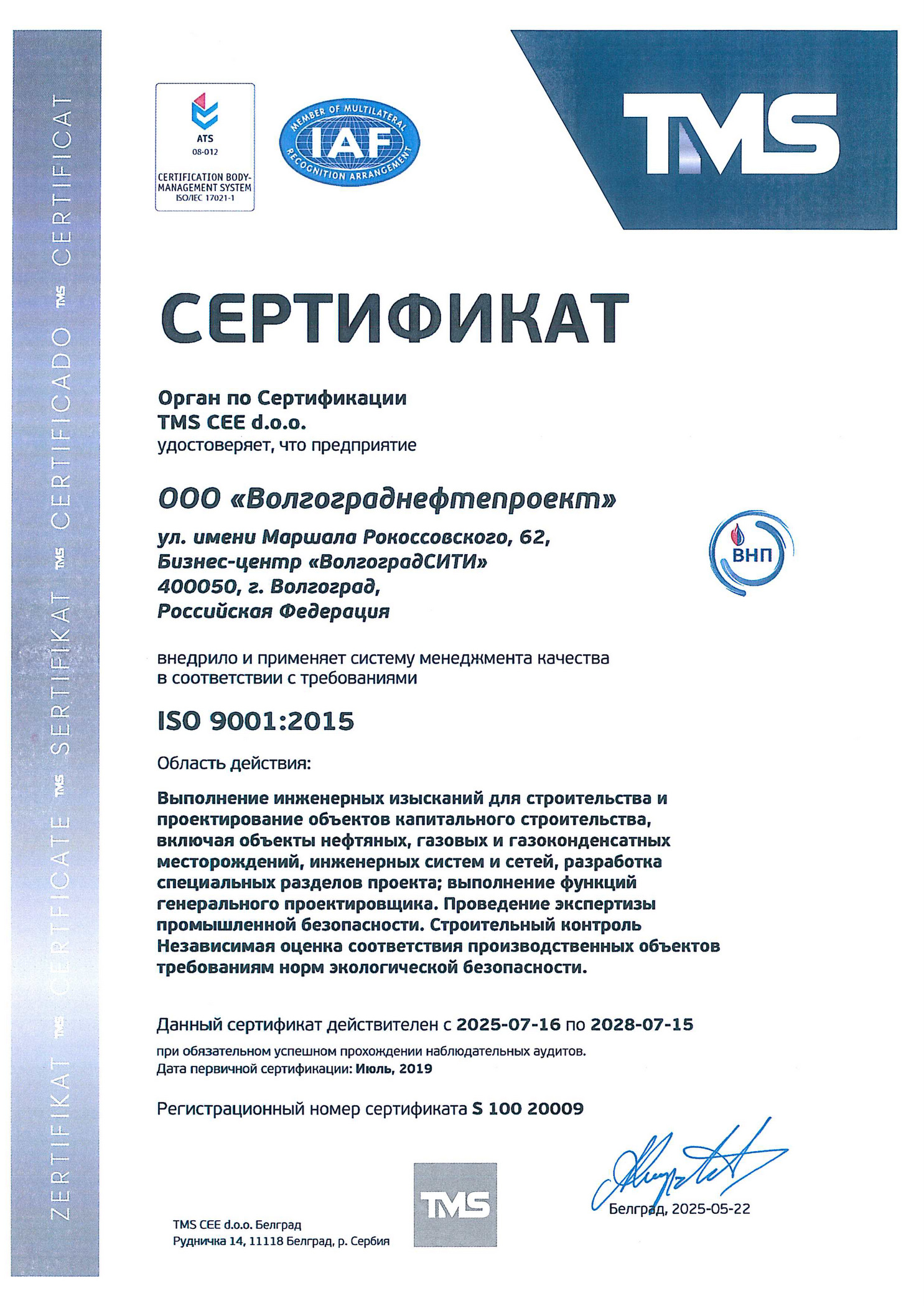 "Одним из инструментов управления деятельностью ООО «Волгограднефтепроект» является Интегрированная Система Менеджмента (система менеджмента качества, экологического менеджмента, системы менеджмента безопасности труда и охраны здоровья).